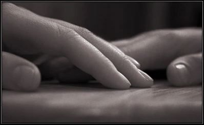 Una mano appena schiusa sul tavolo,